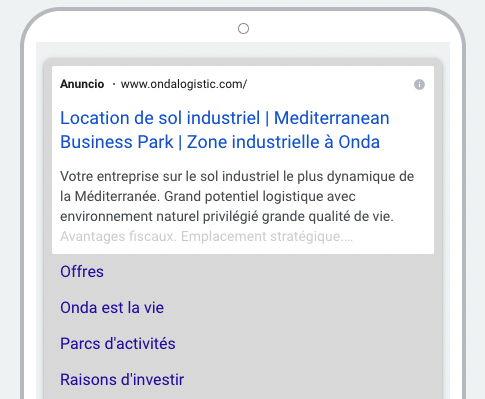 Grupoom creó, diseñó y ejecutó la campaña de marketing digital para promocionar Onda como ciudad sede en un importante hub empresarial, diseñando el portal web y el desarrollo de una campaña de Google Research, en coordinación con otra de Display, complementadas con campañas de anuncios en redes sociales. La respuesta fue muy positiva, comportando un elevado nivel de interacciones y consultas, que germinaron con acuerdos comerciales y un aumento de la presencia y reputación digital del proyecto a nivel nacional e internacional en el segmento de público objetivo seleccionado.